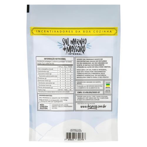 Nosso sal marinho nasce no encontro das águas no estuário do Rio Mossoró, no Rio Grande do Norte. É obtido naturalmente através da ação do sol e dos ventos. Descubra um sal puro e integral, que não passa por tratamentos termoquímicos e preserva seus minerais essenciais. Da natureza brasileira direto para o seu prato! Ingredientes: Sal Marinho, iodato de potássio Combina com: uso geral